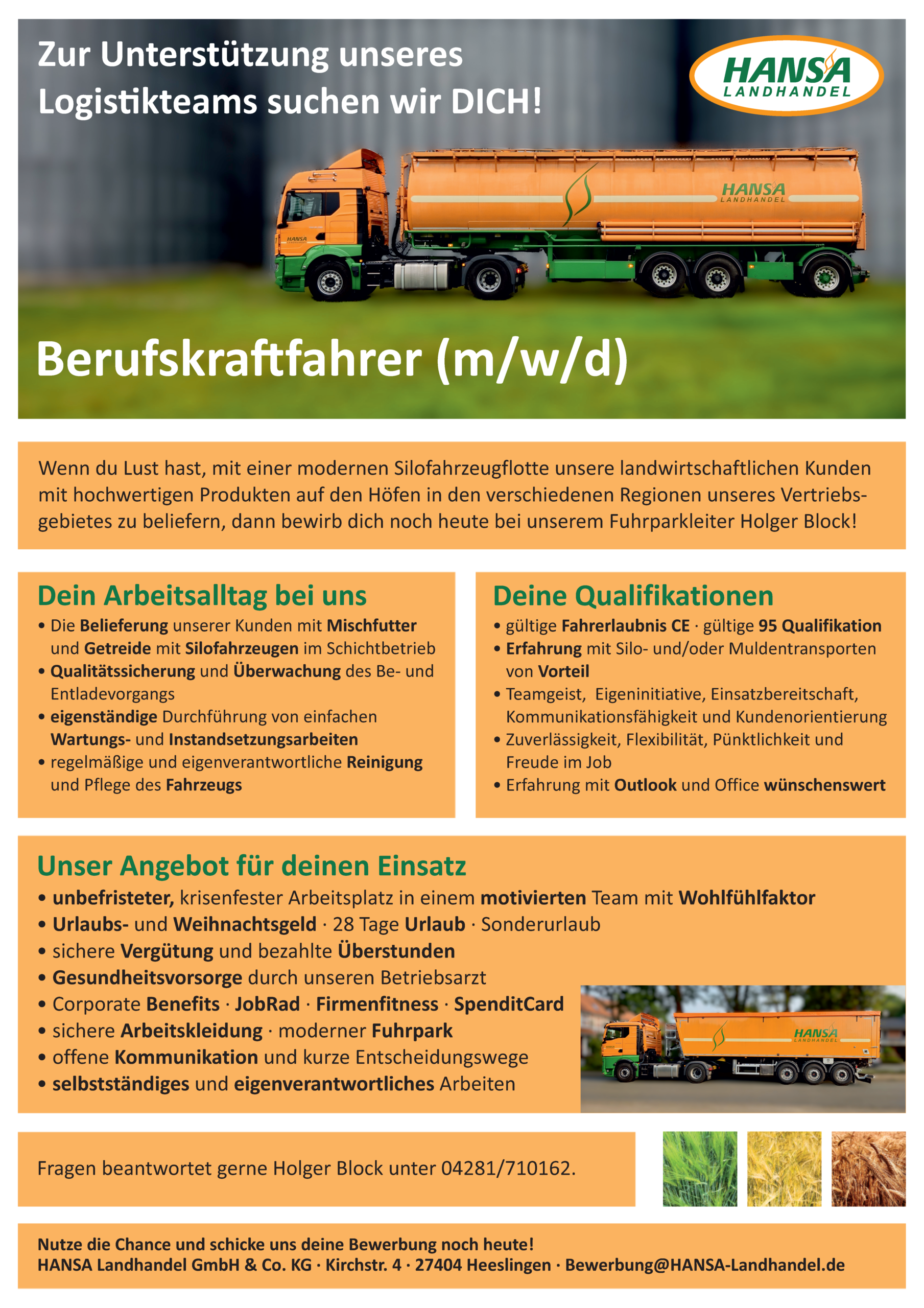 Zur Unterstützung unseres Logistikteams suchen wir immer wieder motivierte LKW-Fahrer/innen in Voll- und Teilzeit für den Großraum Zeven, die Lust haben mit modernen Silofahrzeugen unsere Kundschaft mit Produkten auf den Höfen in verschiedenen Regionen unseres Vertriebsgebietes zu beliefern.